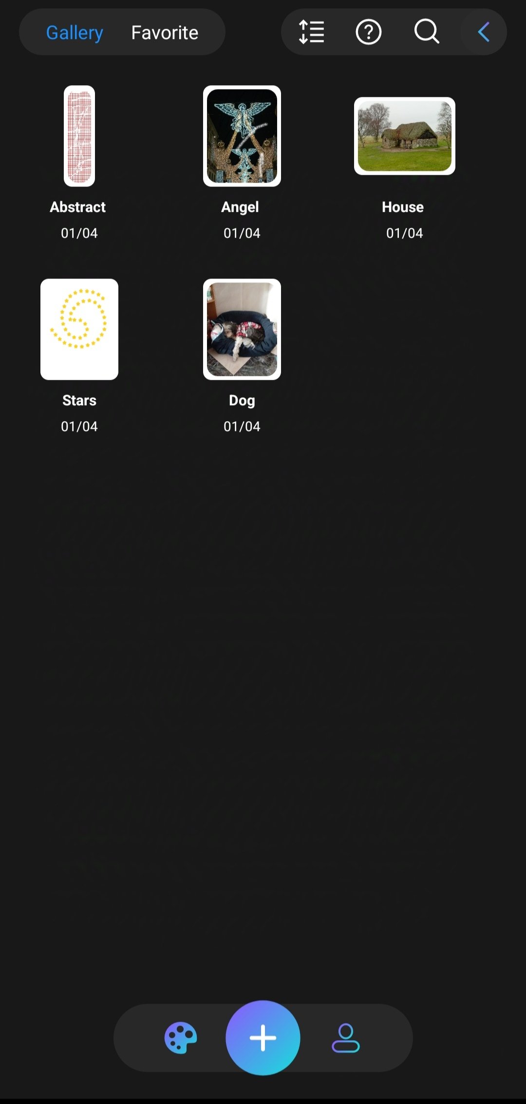 All your works are automatically saved in the app's gallery, where you can sort them by creation time or name and mark them as favorites.