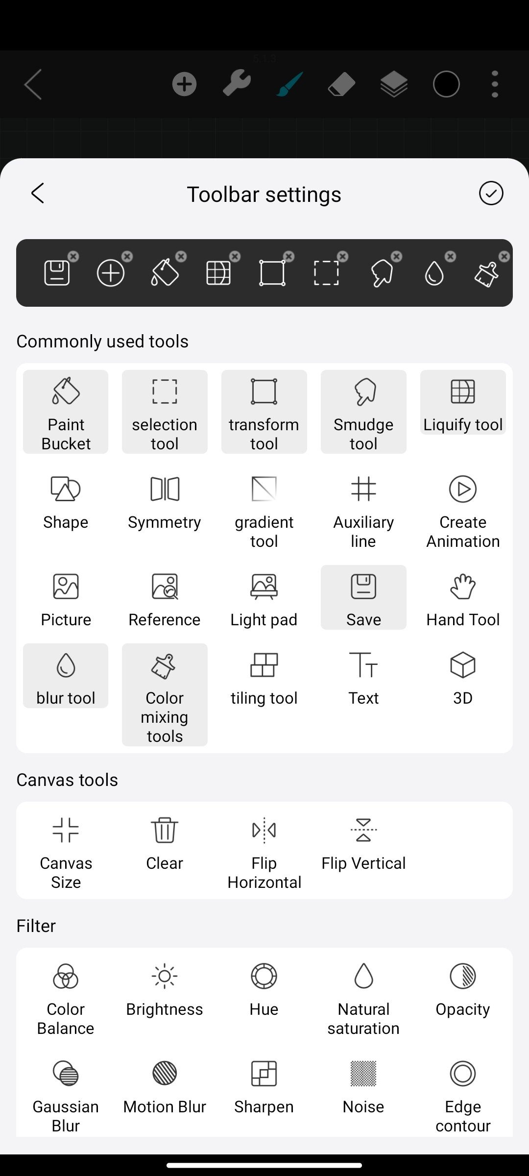 Likewise, HiPaint provides us with a total of 16 finishing effects of all kinds. From the typical balances of color, saturation, opacity, brightness and contrast to more sophisticated ones such as flowering, liquefaction, sharpening or Gaussian blur.