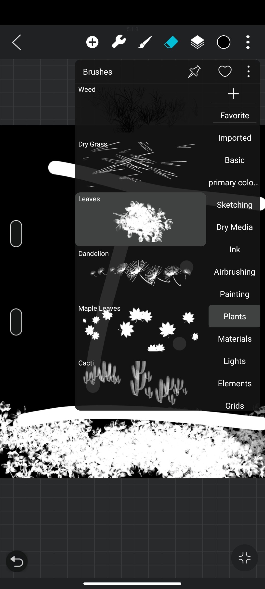 12 different brushes such as charcoal, pencil, pen, ink... Each includes several strokes and it is possible to adjust their properties.