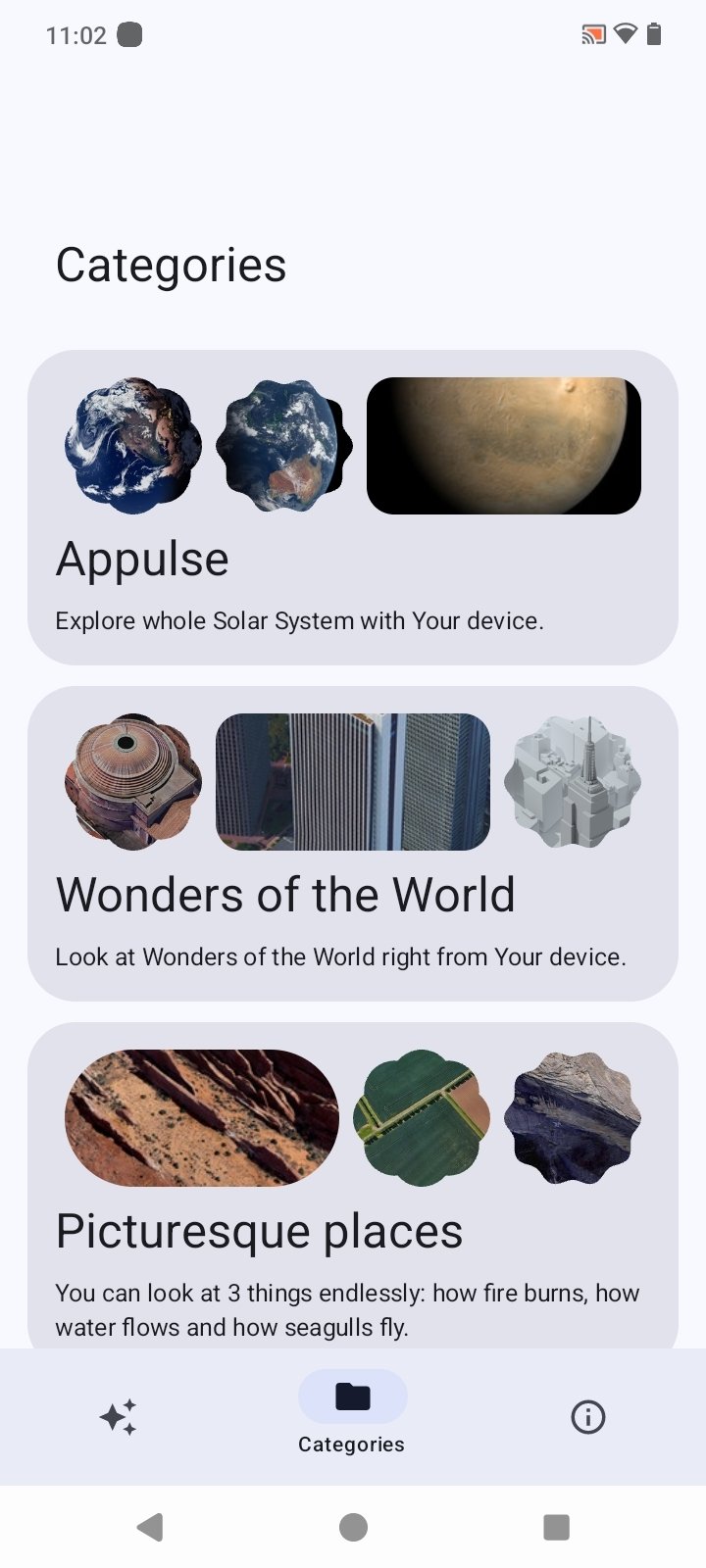 The app organizes backgrounds into various thematic categories, making it easy to find the perfect image. For example, there are sections of scenic places (with GPS location included), minerals, wonders of the world, or birds.