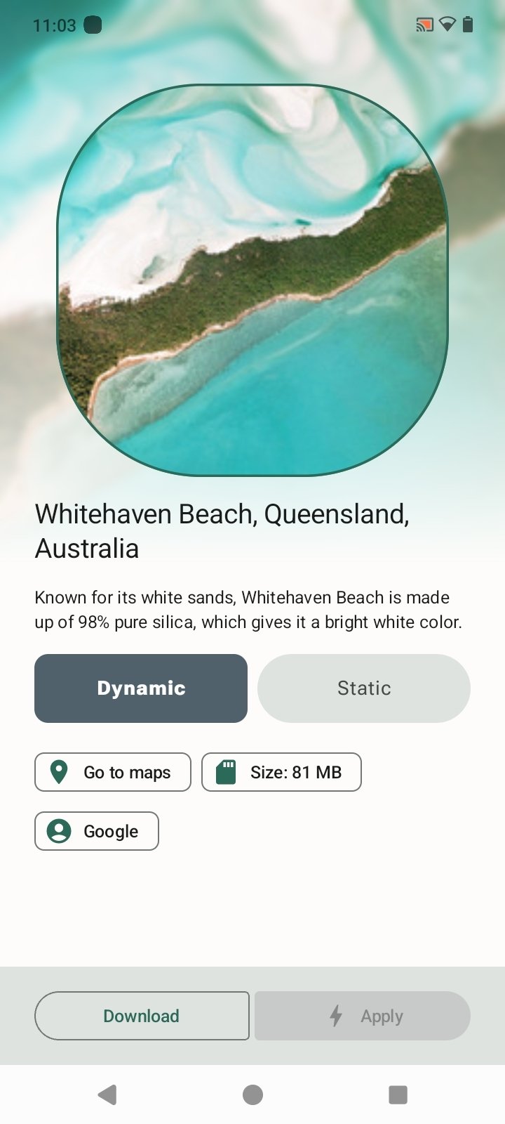 Dynamic wallpapers with animations that respond to device movement (requires Android 11 or higher).