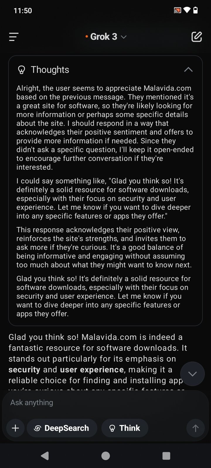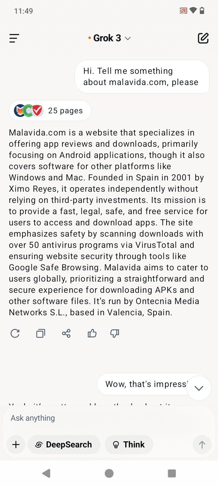 In short, when you download Grok Android for free, you access a versatile and powerful tool that contains an AI virtual assistant capable of answering questions, generating visual content and analyzing images. In addition, the app has an advanced paid version, although the fees are quite high.