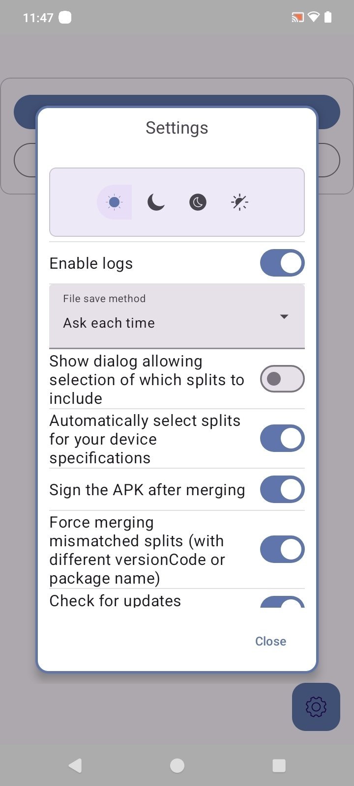 Merge APK files split into APKS, XAPK, and APKM formats into a single installable APK.
